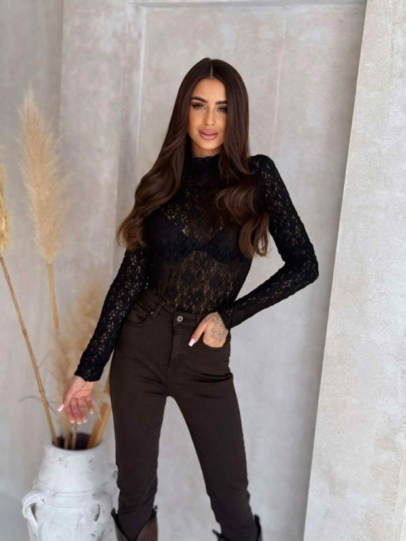 Bluzka koronkowa ze stójką czarna 1593