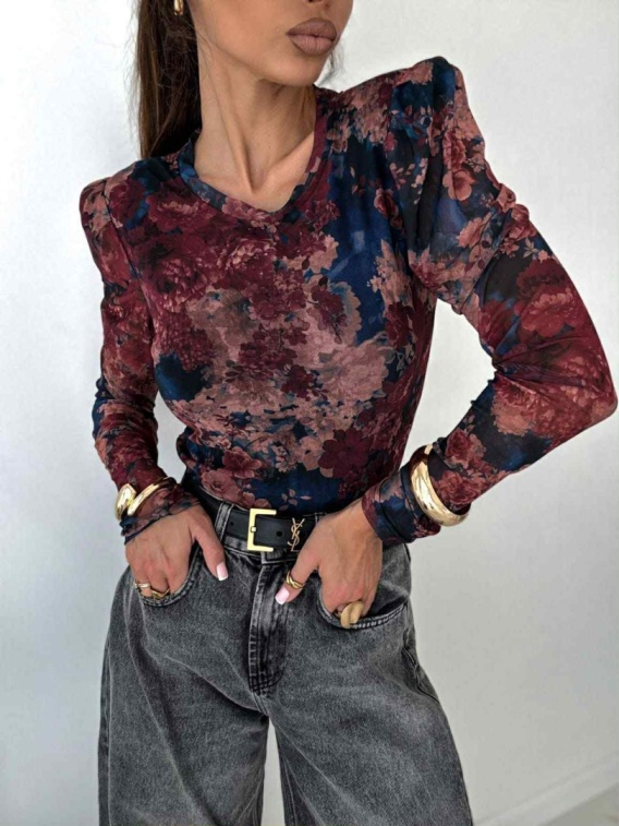 Bluzka z siateczki w kwiatowy wzór z poduszkami 1585