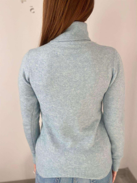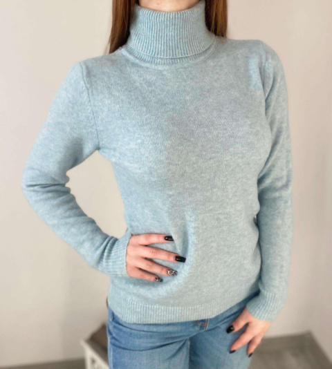 Stylowy błekitny golf o klasycznym kroju, wykonany z przyjemnego w dotyku materiału, który zapewnia komfort i ciepło w chłodniejsze dni. Miękka tkanina delikatnie otula skórę, dodając przytulności i elegancji. Uniwersalny design sprawia, że golf doskonale komponuje się z różnymi elementami garderoby – od jeansów po eleganckie spodnie czy spódnice. Idealny wybór na co dzień i na wyjątkowe okazje, dla osób ceniących ponadczasowy styl i wygodę.