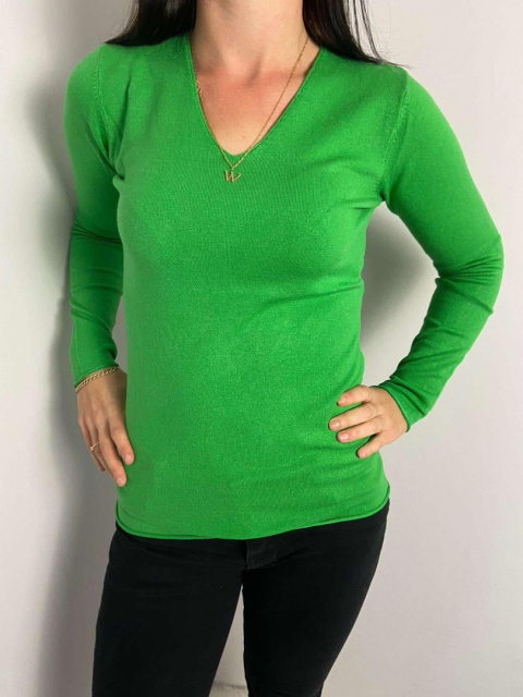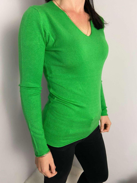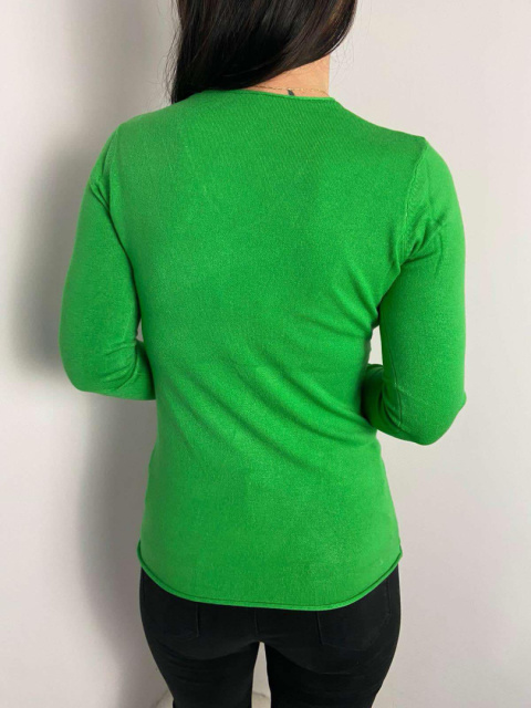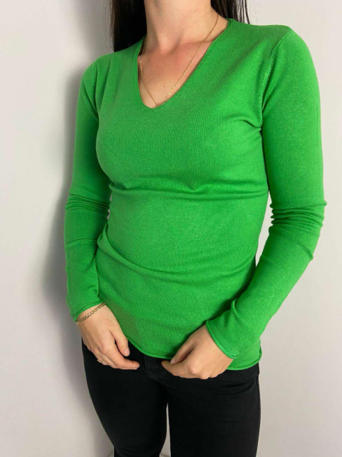 Lekki zielony sweterek z dekoltem w serek - delikatny i stylowy