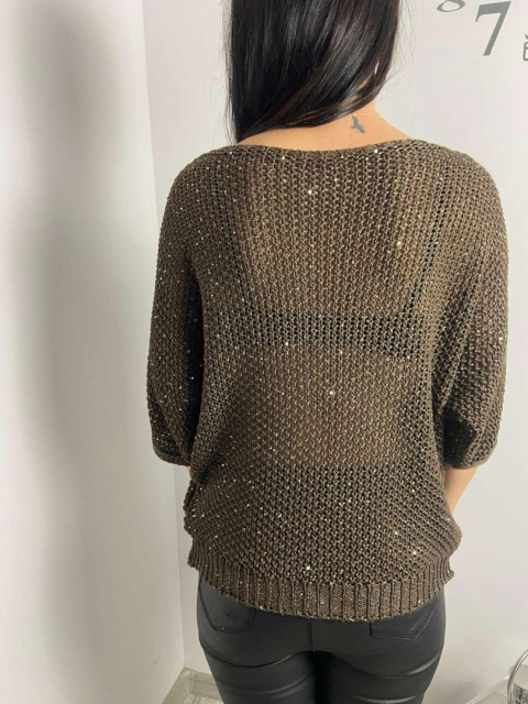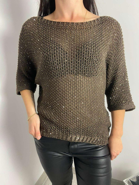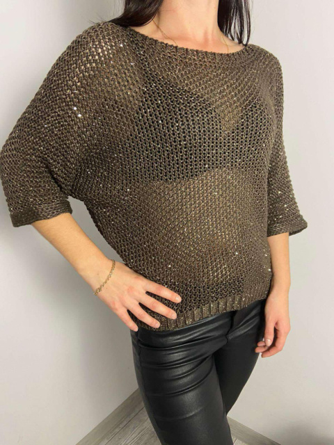 Sweter azurowy czekoladowy z cekinami, rękaw 3/4 1260