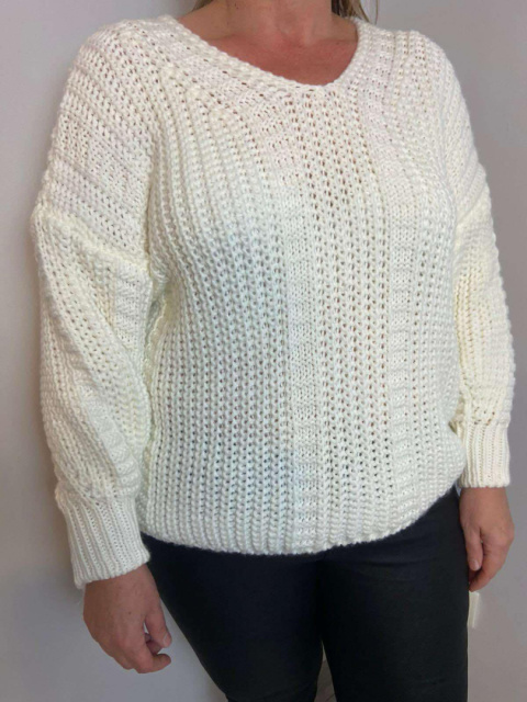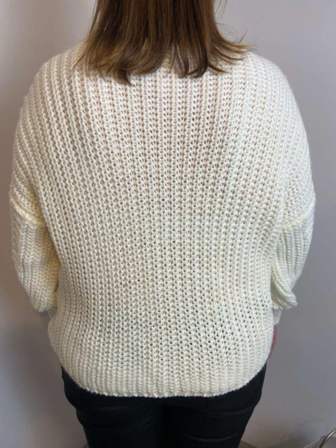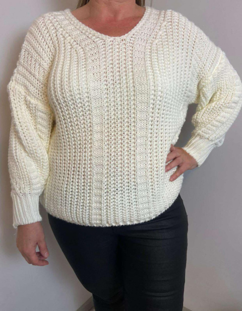 Sweter grubo pleciony z delikatnym dekoltem V w kolorze białym 1314