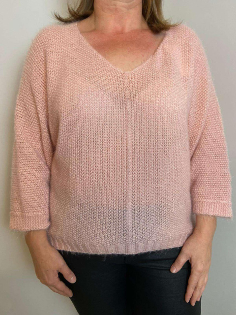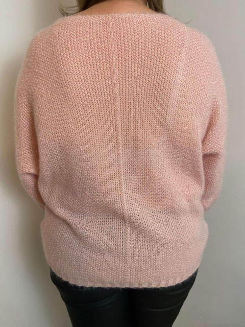 Sweter moherowy pudrowy róż z delikatnym dekoltem V